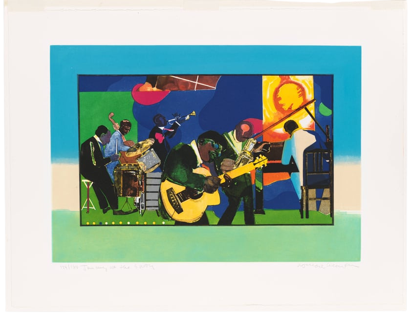 Jamming at the Savoy by Romare Beardon. Jamming at the Savoy - the classic NYC jazz venue in the 1940s, home to greats from Duke Ellington to Count Basie.
